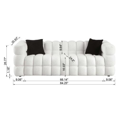 Bring warmth and luxury to your home with the Modern Bouclé Marshmallow Sofa, designed with the human body structure of USA users in mind. Crafted for both comfort and sophistication, this 3-seater sofa features soft bouclé fabric, deep seating, and a timeless modern silhouette that enhances any living space.